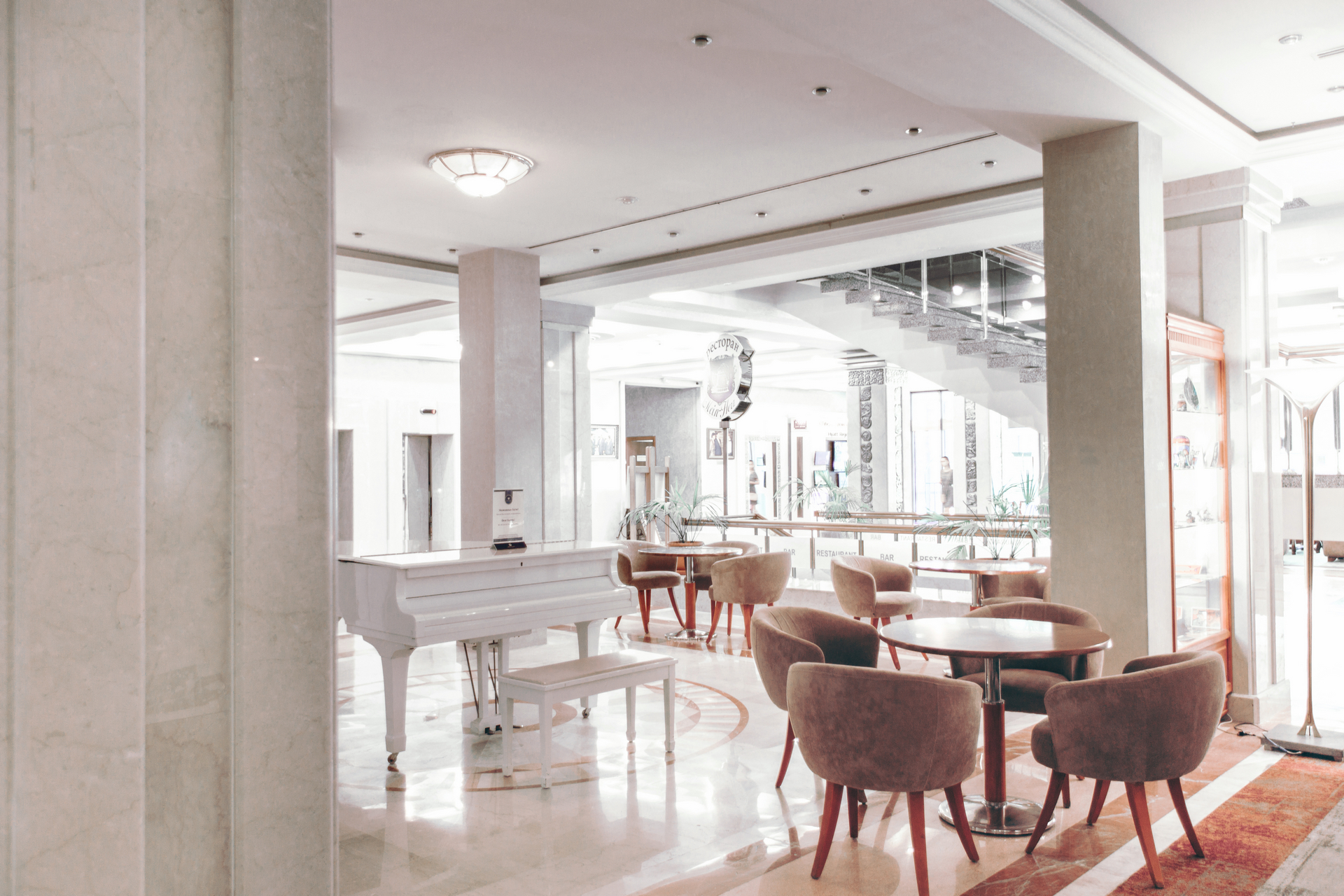 В отеле — 254 номера девяти категорий: от одноместных до президентского люкса. Каждый номер оснащён: