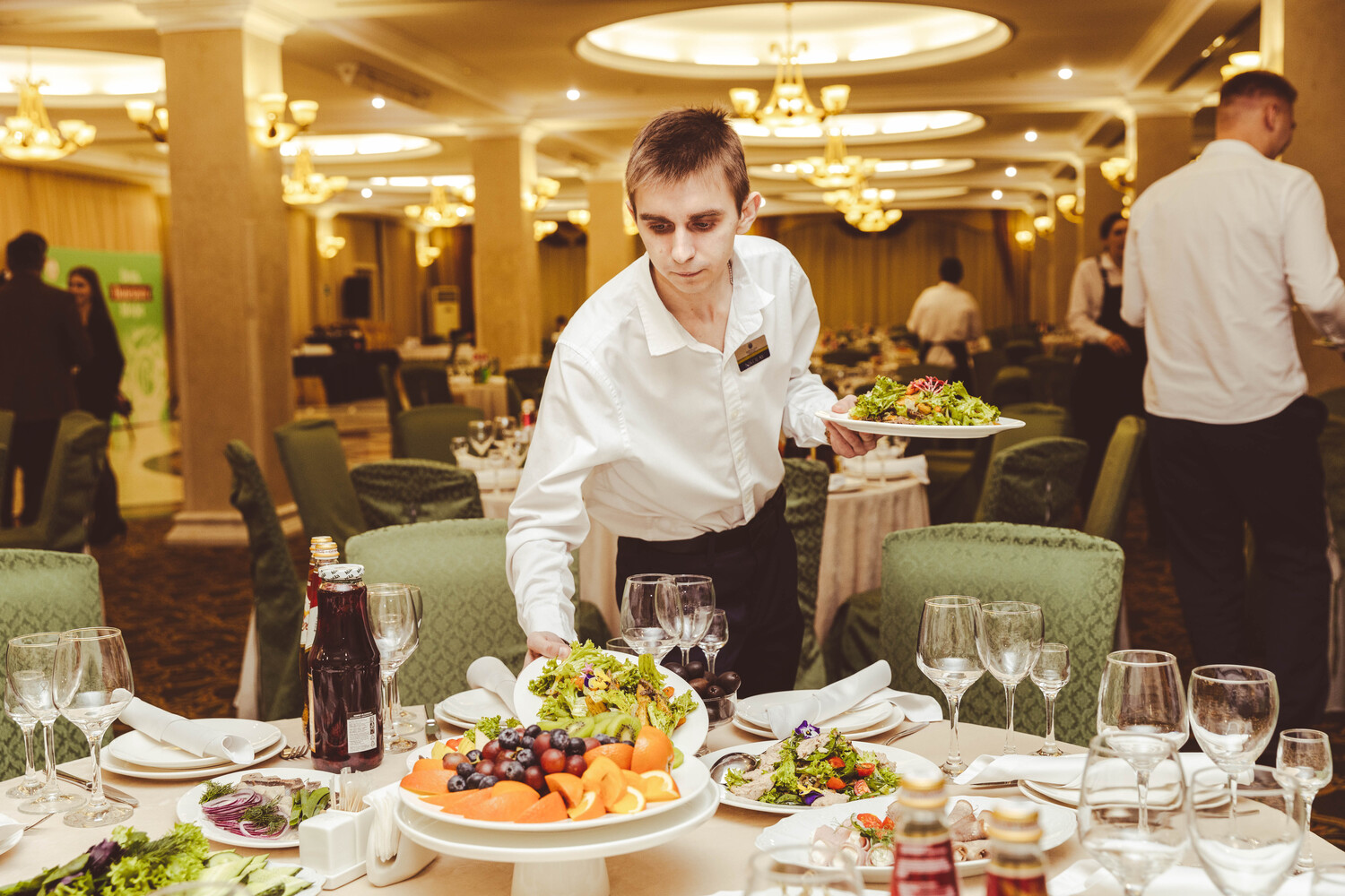 Вторая часть мероприятия - банкет для более 170 человек с торжественным награждением победителей. На мероприятии присутствовали представители департамента потребительского рынка и правительства, они же вручали благодарственные письма и подарки участникам соревнования.